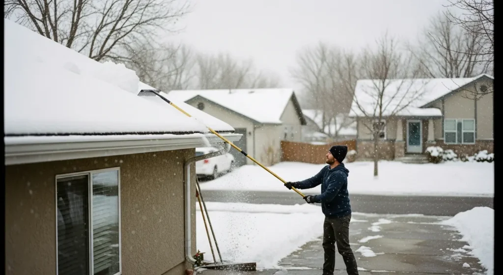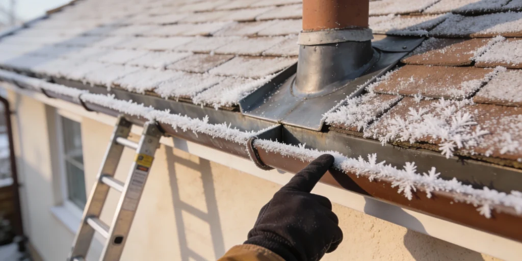 - Gutters & eaves: Icicles, staining, or overflow marks suggest clogs or poor pitch.